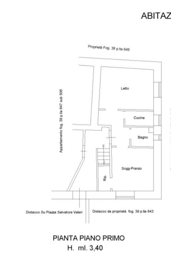 Appartamento primo piano composto da soggiorno, cucinotto, disimpegno, camera e bagno.