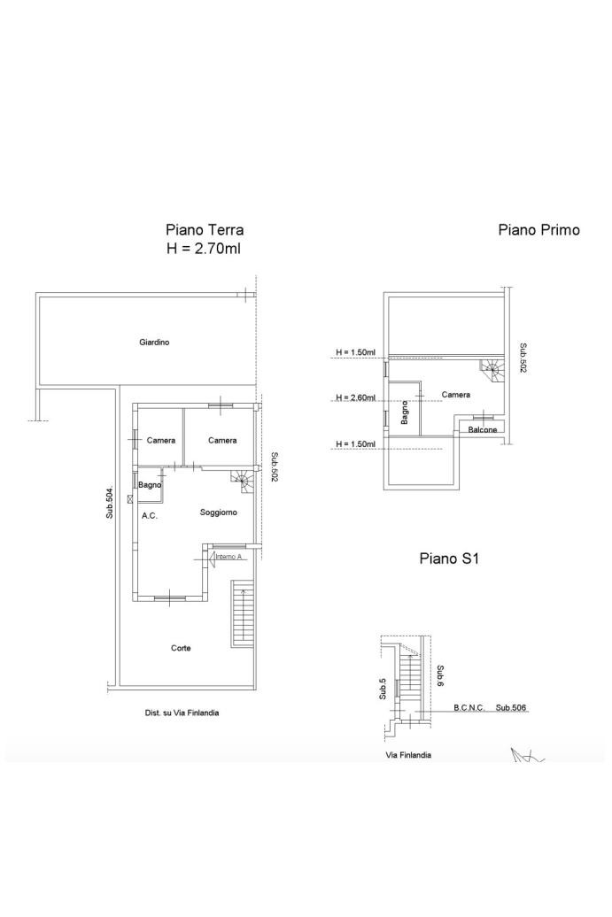 Villetta distribuita su tre livelli. Piano terra composto da soggiorno, cucina, due camere e bagno. Piano primo composto da camera, bagno e balcone. Completano la proprietà un giardino privato e un box auto al livello S1.