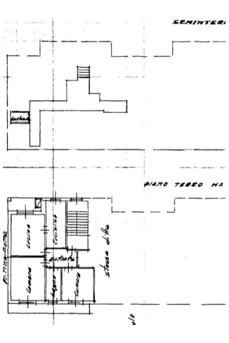 Appartamento sito al terzo piano (4° f.t.) composto da un soggiorno living, un bagno, due camere e due balconi. Al piano seminterrato un locale cantina.
