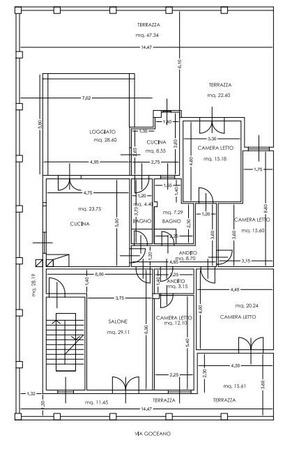 Appartamento primo piano composto da ingresso, salone, cucina, quattro camere, due bagni e ampio terrazzo.