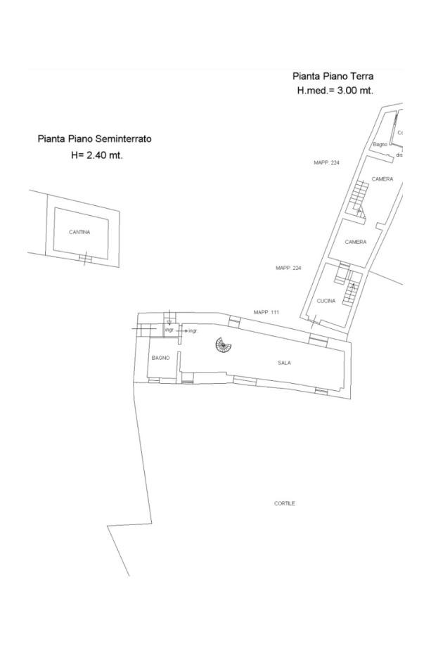 Abitazione piano S -T - 1 -2 consistenza 12,5 vani. Composta da cantina al piano seminterrato e una casa distribuita su piano terra e primo, con cortile.