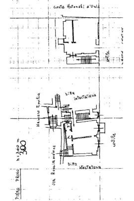 Abitazione posto al piano primo (2° f.t.), attualmente costituito da unico vano con area cottura e da balcone sul lato cortile- uso perpetuo ed esclusivo di porzione di sottotetto posta al piano superiore e collegata all'alloggio al piano sottostante da scala interna e costituita da due camere da letto ed un bagno,- nel corpo di fabbrica confinante piena proprietà di cantina posta al piano terra.