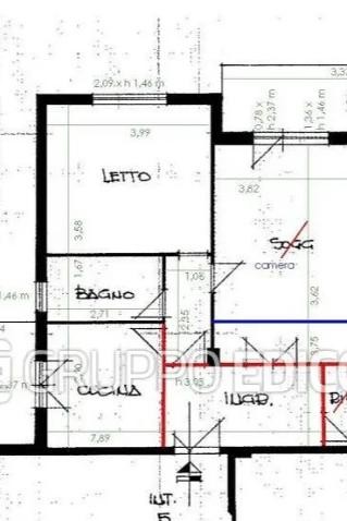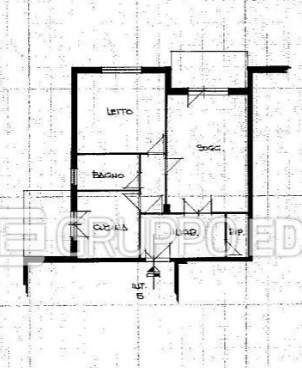 Appartamento secondo piano composto da ingresso, soggiorno, cucina, camera, bagno, ripostiglio e due balconi.
