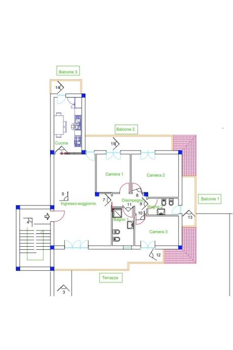 Appartamento secondo piano composto da soggiorno, cucina, tre camere, due bagni, tre balconi e terrazzo. Completa la proprietà un posto auto scoperto.