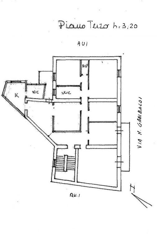 Appartamento terzo piano composto da ingresso, soggiorno, cucina, due bagni, sei camere, ripostiglio e balcone. Completano la proprietà un locale magazzino e un garage al piano terra.