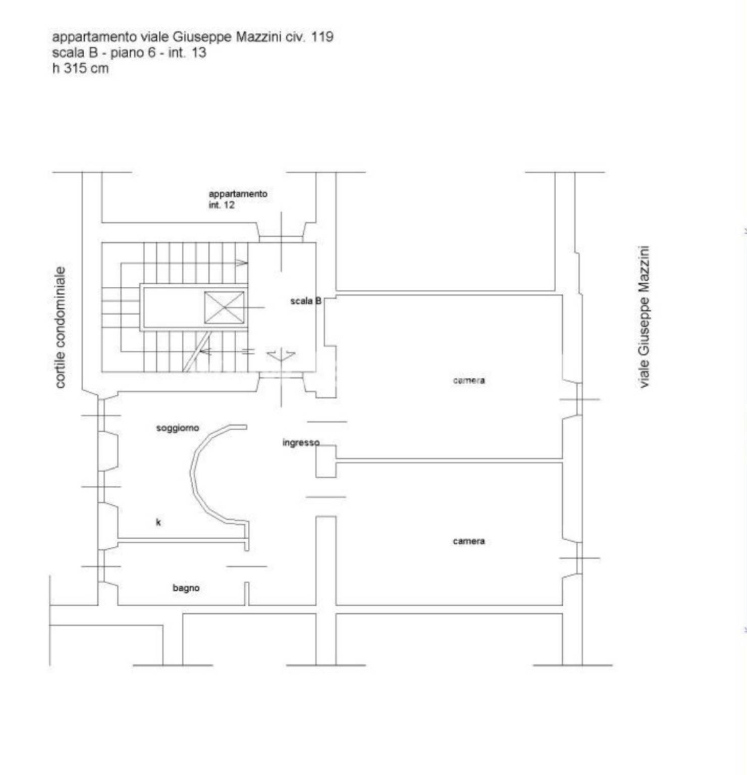 Appartamento al piano sesto, scala B, interno 13, composto da soggiorno con angolo cottura, disimpegno, due camere da letto di cui una con bagno interno, secondo bagno.