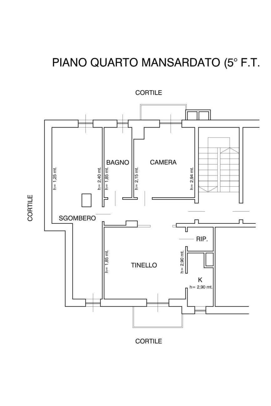 Appartamento al piano quarto mansardato (5° f.t.), INGRESSO, CUCINA, UNA CAMERA, UN BAGNO.