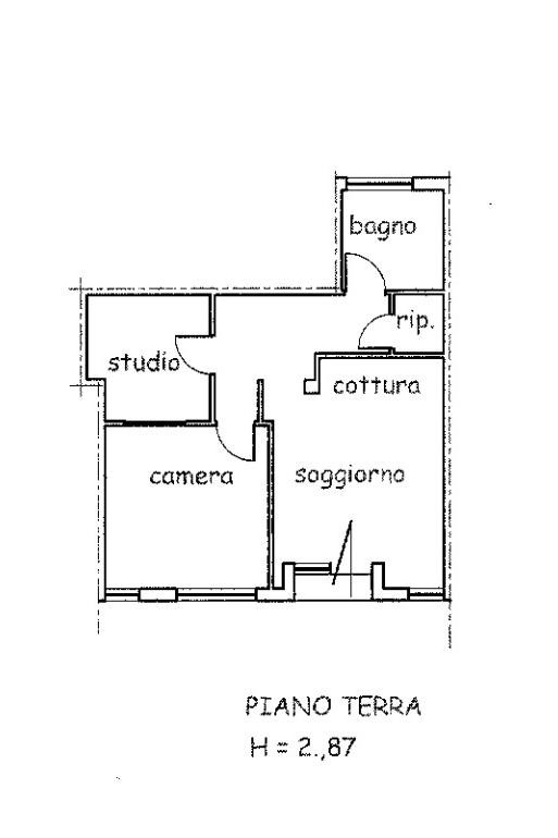 Appartamento piano terra composto da ingresso, soggiorno con angolo cottura, disimpegno, bagno, ripostiglio.camera e studio.