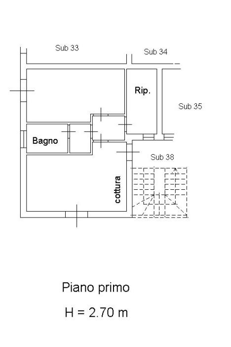 Appartamento primo piano composto da soggiorno, angolo cottura, camera, bagno e ripostiglio.
