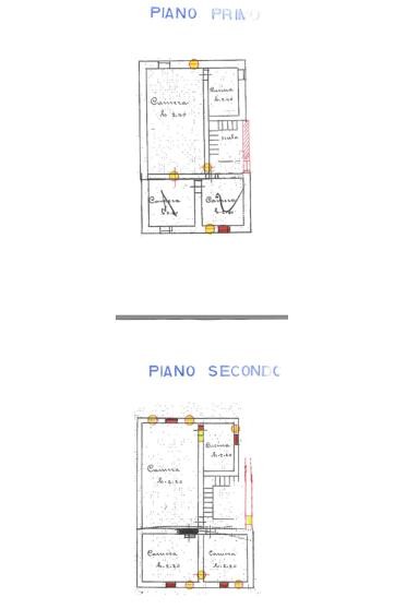 Abitazione composta da: piano interrato: cantina; piano terreno: ampia camera, cucinotta, disimpegno e bagno, due camerette; piano primo: ampia camera, cucina, due camerette;piano secondo: ampia camera, cucina, due camerette. Oltre a i) locale deposito elevato ad un piano fuori terra, con accesso sia dalla via comunale che dal cortile interno dividente dal fabbricato di civile abitazione e ii) appezzamento di terreno.