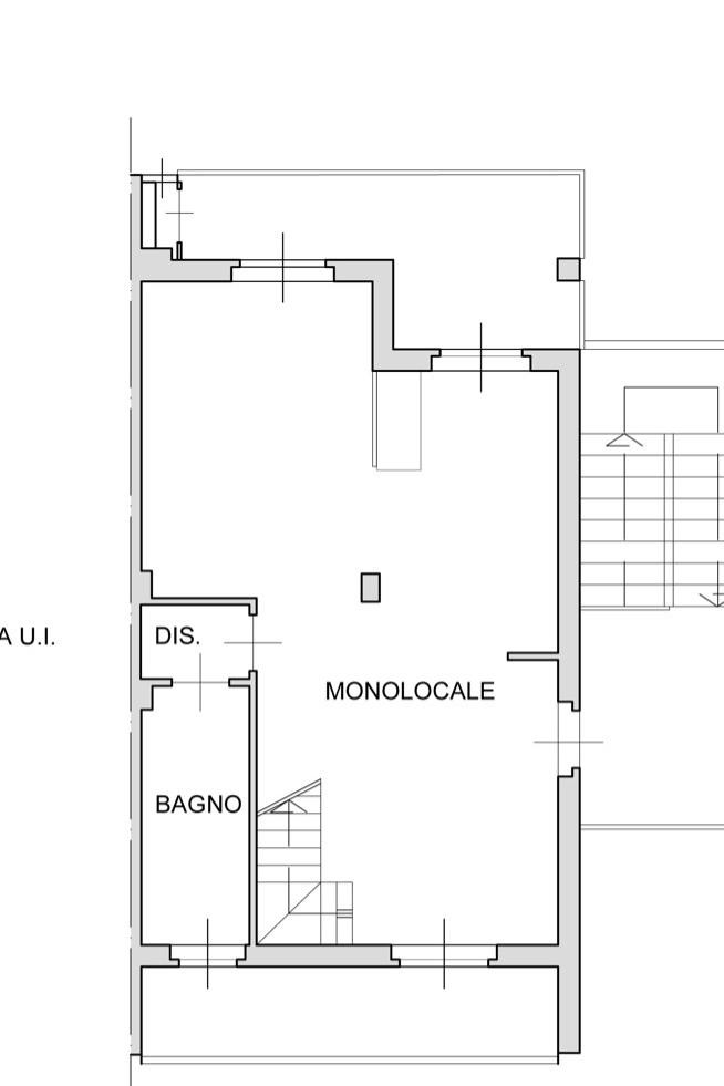 Alloggio su due livelli, piano primo e piano sottotetto, risulta composto al piano primo (2° fuori terra) da monolocale con angolo cottura, disimpegno e bagno, al piano sottotetto, collegato tramite scala interna, da locale di sgombero (utilizzato come camera da letto),lavanderia (utilizzata come bagno) e ripostiglio;-cantina al piano interrato “sub 14”.