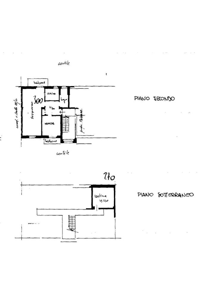 Alloggio al piano secondo (3° f.t) composto di: ingresso, una cucina, soggiorno, due camere, un wc, un piccolo ripostiglio e due balconi, annessa cantina al piano cantinato.