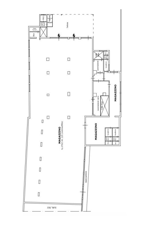 Ampio magazzino piano seminterrato, ad oggi adibito a supermercato per vendita al dettaglio di generi alimentari.