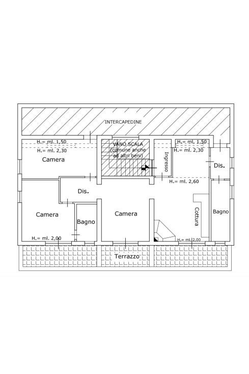 Immobile secondo piano, destinato ad uso uffici, composto da 5 vani, due bagni e terrazzo.