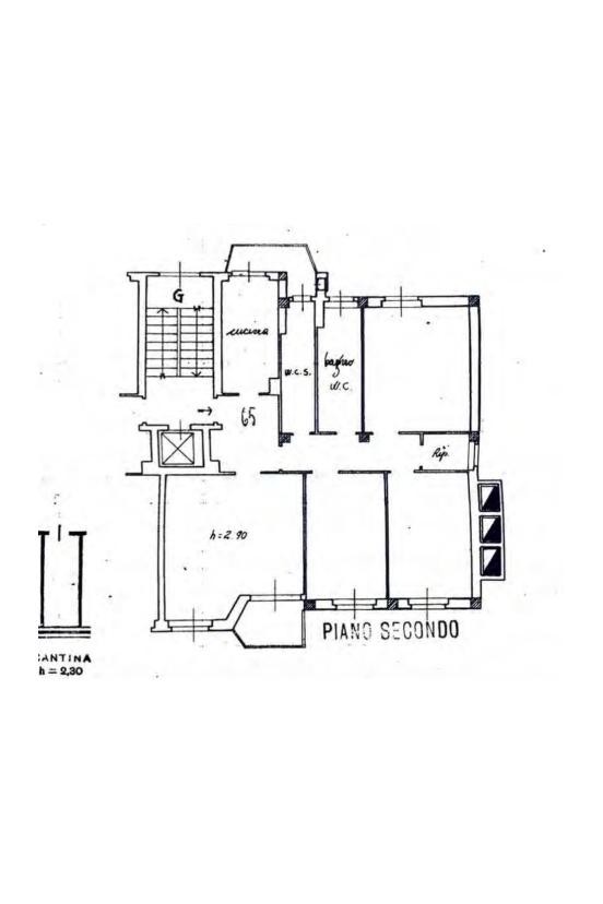 Appartamento secondo piano composto da ingresso, disimpegno, soggiorno, cucina, tre camere, bagno, due ripostigli e due balconi. Completa la proprietà una cantina al livello S1.