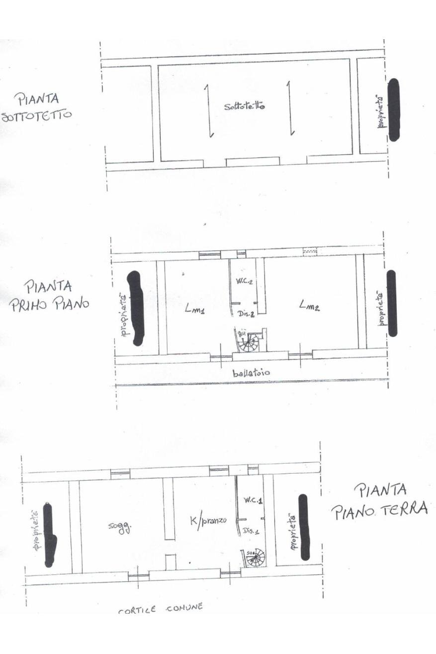 Unità abitativa e locale sottotetto, composta da: due ambienti, disimpegno e bagno, al piano terra; due ambienti, disimpegno e bagno, al piano primo; sottotetto con copertura a falde in legno, di pertinenza esclusiva dell'abitazione (al sottotetto non è possibile accederci dall'abitazione tramite scala interna, ma solo attraverso una scala amovibile), al piano secondo.