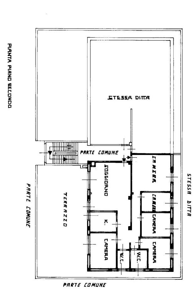 Appartamento secondo piano composto da soggiorno, cucina, quattro camere, due bagni ed ampio terrazzo.