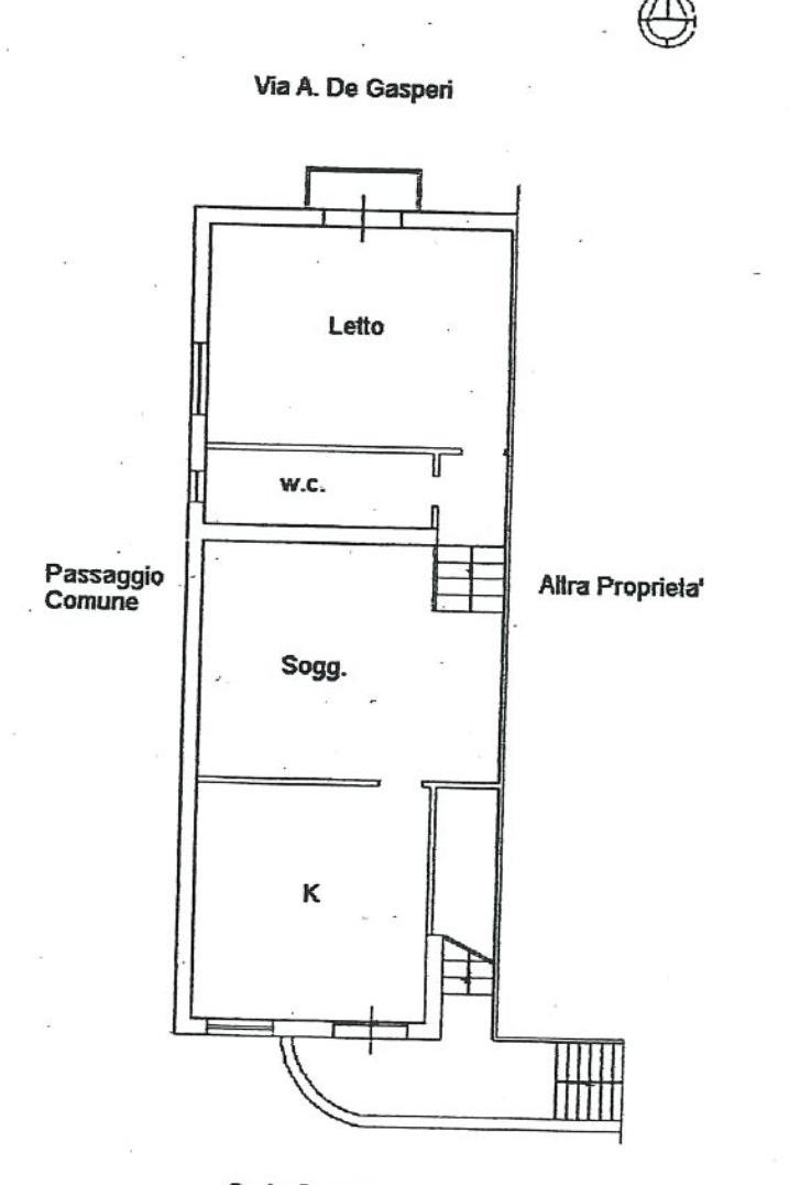 Appartamento al piano primo di un edificio di tre piani. L'appartamento si compone di cucina, soggiorno dove insiste una piccola scala che permette l'accesso al bagno e alla camera da letto.