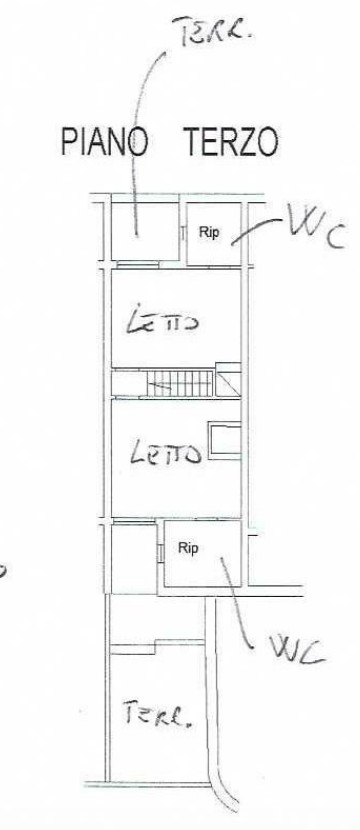 Appartamento distribuito su due livelli, secondo e terzo, collegati da scala interna, composto da soggiorno, angolo cottura, ripostiglio, due camere, tre bagni e due terrazzi.