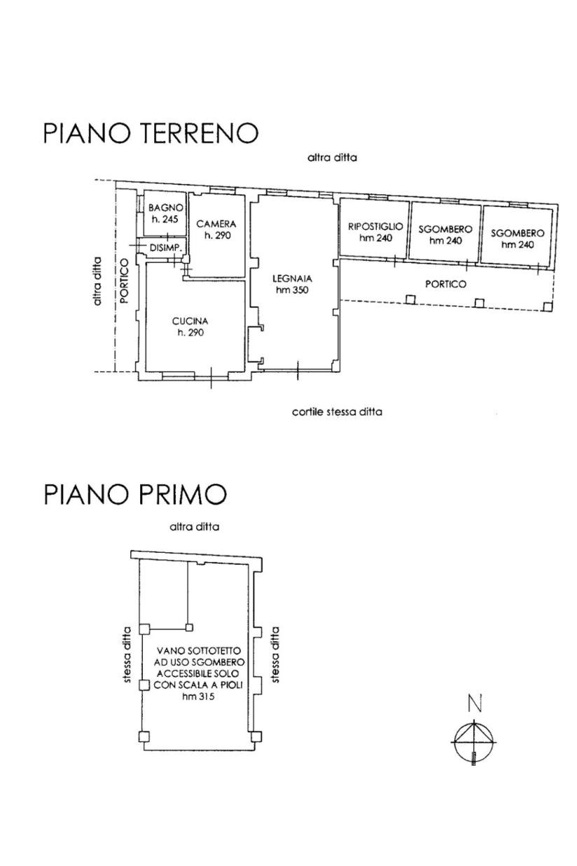 Fabbricato di civile abitazione da terra a cielo, entrostante a cortile esclusivo, costituito da: al piano terreno (primo fuori terra), unità immobiliare residenziale di cucina, camera e bagno, locale legnaia con due vani, tre locali sgombero; al piano sottotetto, locale sottotetto con un vano uso sgombero, collegato da scala esterna.