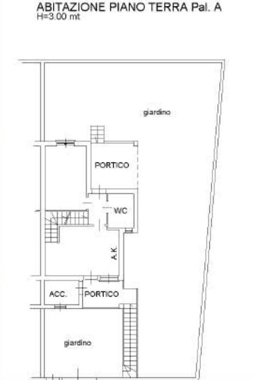 Porzione di villino bifamiliare distribuito su tre livelli. Piano seminterrato composto da soggiorno con angolo cottura, due camere, bagno e ripostiglio. Piano terra composto da soggiorno con angolo cottura, due camere, bagno e ripostiglio. Piano primo sottotetto composto da camera, bagno e terrazzo. Completano la proprietà un giardino privato e un garage.