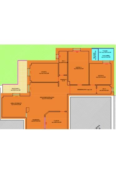 Appartamento al secondo piano composto da cucina, soggiorno, due camere, due bagni, ingresso, disimpegno, studio. due balconi, veranda.