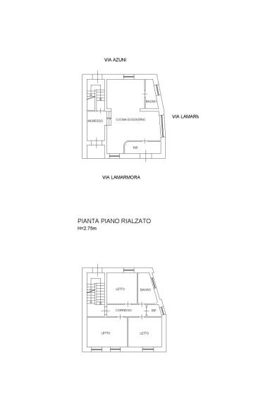 Appartamento piano T-1 composto da soggiorno con angolo cottura, un bagno al piano terra, tre camere un bagno al piano primo.
