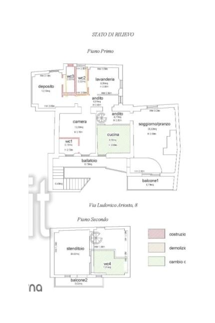 Immobile posto al piano primo e secondo, consistenza 5 vani, per una superficie commerciale complessiva di circa 154mq.