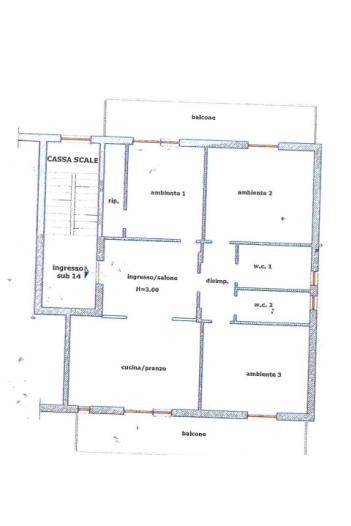 Appartamento al piano primo, ingresso/salone, cucina/pranzo, 3 camere, ripostiglio, disimpegno, 2 bagni e 2 balconi, mq 118 c.a. ; box auto, p. terra.