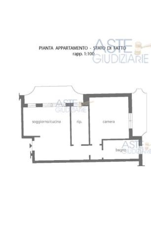 Appartamento ad uso abitazione di mq. 47 netti, al piano secondo, composto da cucina/soggiorno, camera, ripostiglio e bagno, oltre balcone.