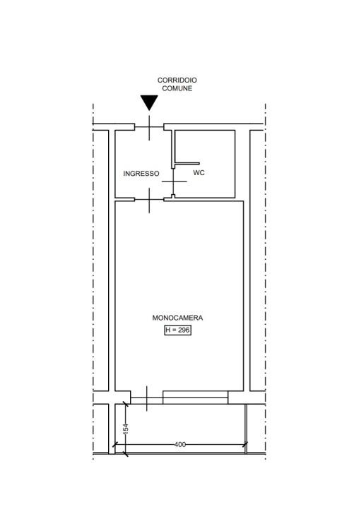 Alloggio al piano primo (2° f.t.), distinto con il numero “12”, composto di ingresso su disimpegno, bagno, vano monocamera con angolo cottura.