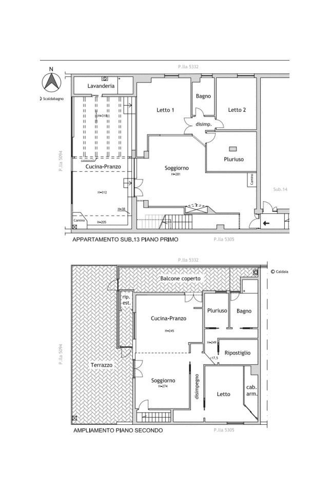 Appartamento piano 1; è composto da ampio soggiorno, cucina-sala pranzo, due camere da letto, un bagno, ed una lavanderia; e appartamento al piano secondo composto da cucina-soggiorno, disimpegno, una camera da letto con cabina armadio, un bagno, un pluriuso ed un ripostiglio, oltre balcone e terrazzo.