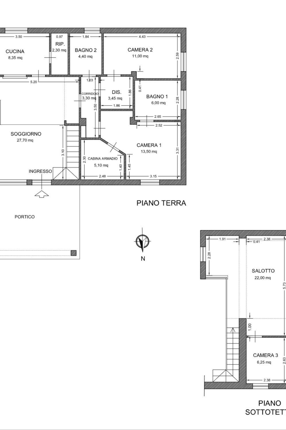 Villino disposto ai piani terra e primo, composto al piano terra da soggiorno/ingresso, cucina, ripostiglio, corridoio, n. 2 bagni, n. 2 camere, cabina armadio, disimpegno ed un portico; al piano primo da un salotto ed una camera da letto. Completano la proprietà una corte esterna esclusiva di mq. 582 ed un box.