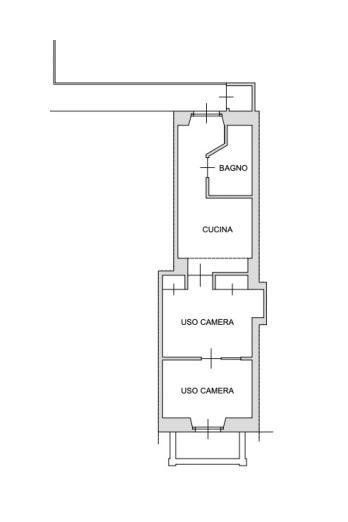 Alloggio con cantina pertinenziale al piano secondo in stabile con ascensore, con accesso dal ballatoio su vano scala condominiale, composto da cucina, locale spogliatoio, camera e bagno. Occupato con contratto di locazione registrato con scadenza al 31/03/29.