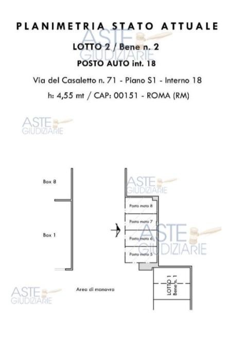 Posto auto coperto ubicato in autorimessa condominiale situata al piano seminterrato di un complesso edilizio composto da tre palazzine avente accesso tramite due rampe pedonali e carrabili. Il posto auto è ubicato al piano seminterrato, catastalmente contraddistinto con il numero d'interno 18, risulta attualmente composto da n. 4 posti moto numerati dal n. 5 al n. 8 delimitati a terra da segnaletica orizzontale.Il tutto per una superficie convenzionale complessiva pari a mq 9,50.confinante
