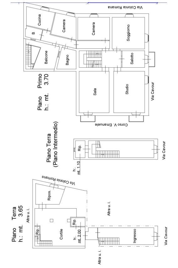 Abitazione su quattro livelli, composta da locali sgombero, deposito piu' cortile al piano terra; al primo piano soggiorno, studio, due camere, cucina, due bagni, balconi e tre terrazze; al secondo piano sei locali , soffitta e bagno; terzo piano terrazza.